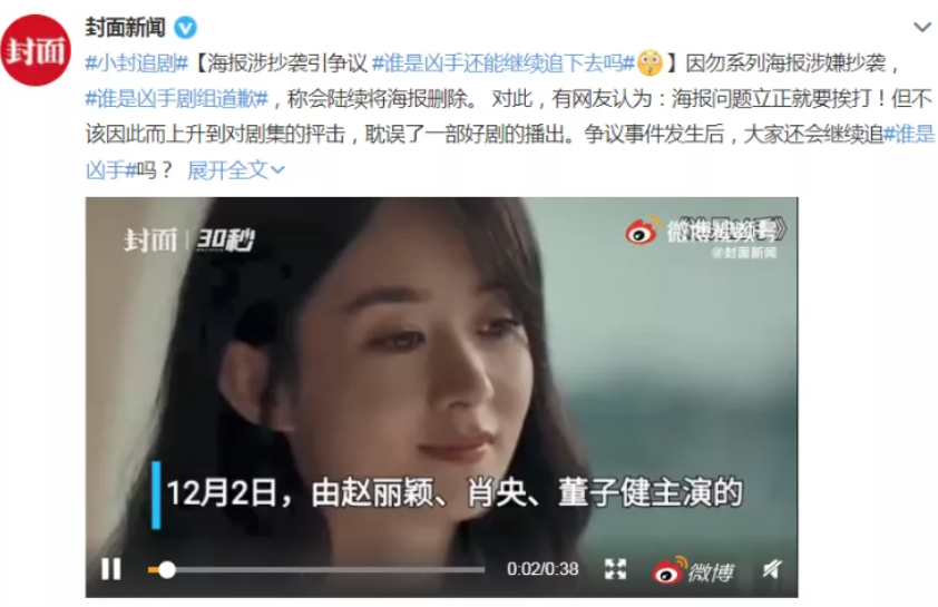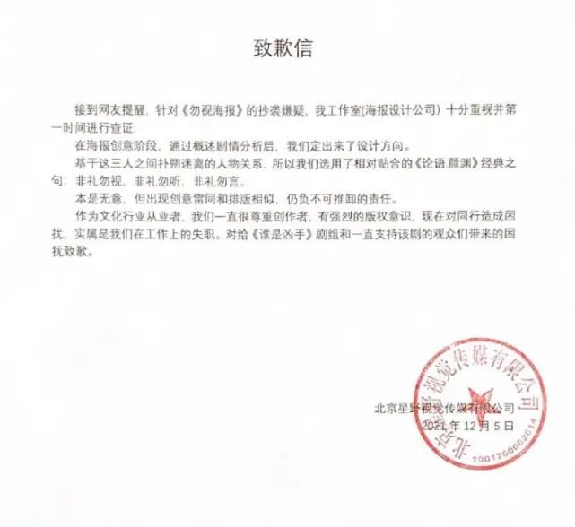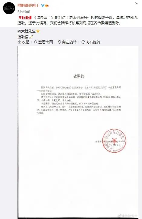 《谁是凶手》海报设计方发道歉信