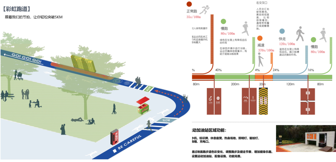 会说话的跑道:不同的色彩和路面指引,使跑道变得更科学。