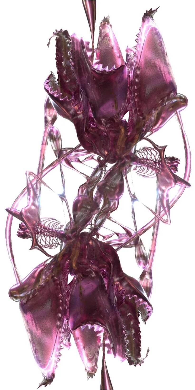 究竟生活本身的样态应当是什么?我们应当如何真实地生活?或许,从此刻存在的物质体里抽离,遁入越精神体以外,无物的空虚之中,答案自会浮现……艺术家借由人与自然植物、海洋生物融会沟通后产生的泛生物化效果,制造出名为“0X0”的虚空宇宙,其结构似佛教之须弥山,而绕山散落的“Tinder killer”、“Man-eating flower”等超自然有机物,是现实人性固有的贪念、好奇、依恋等特质在这一宇宙里的折射制品。