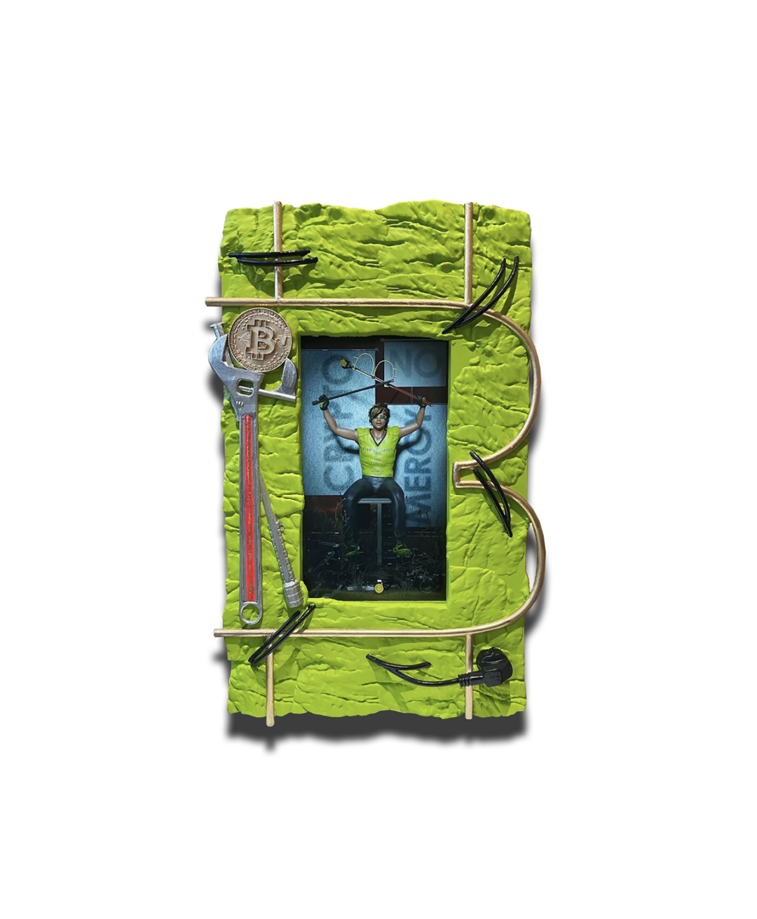 祝金坤《加密不仁慈 Crypto No Mercy》树脂,液晶显示屏,石膏板,喷漆,66×45×10cm,2022