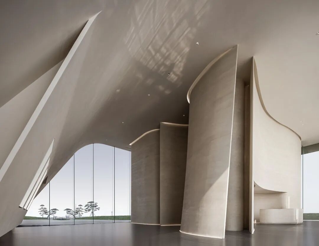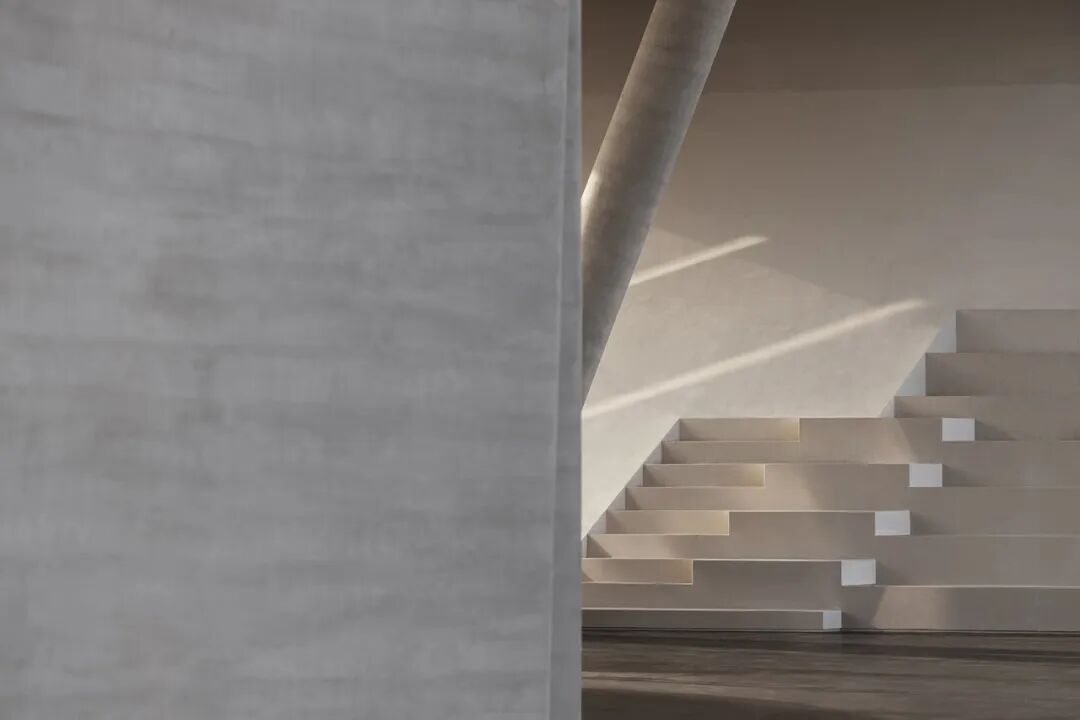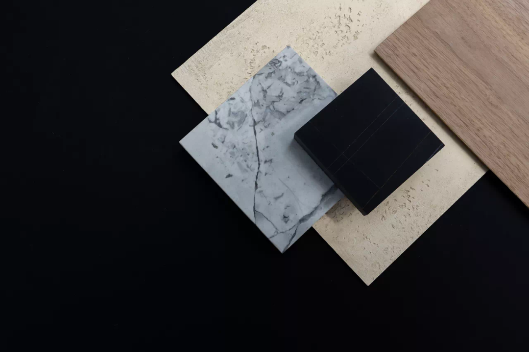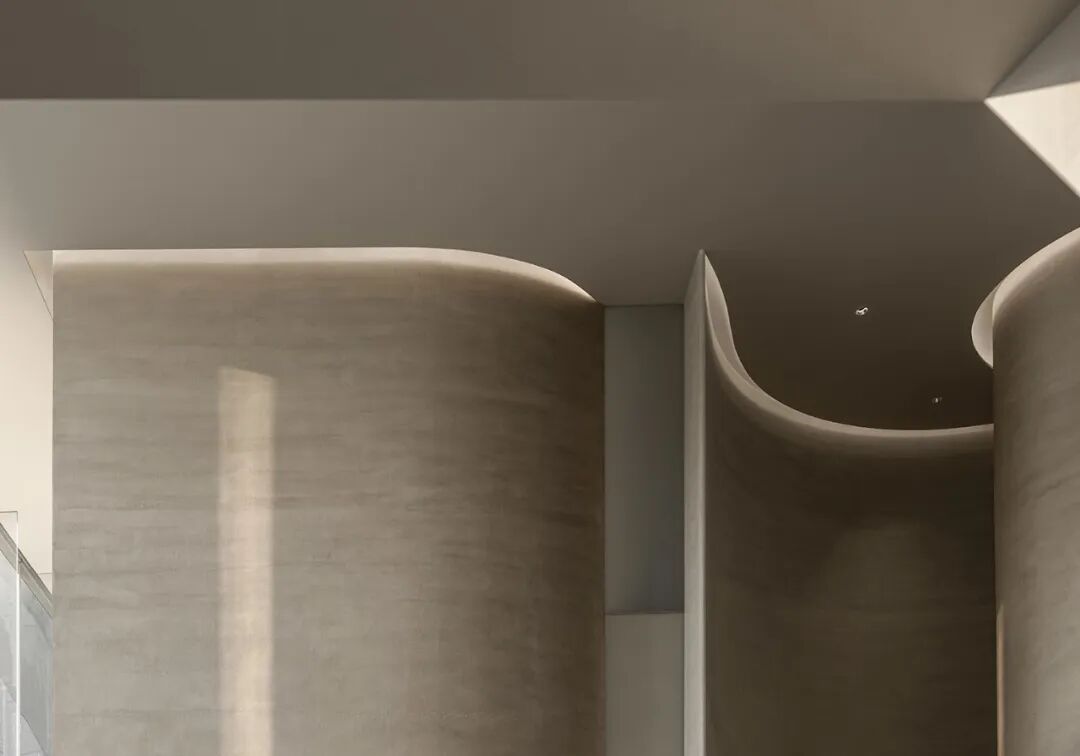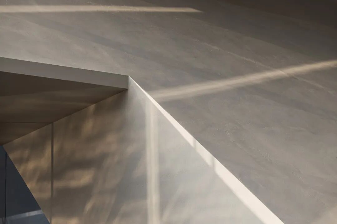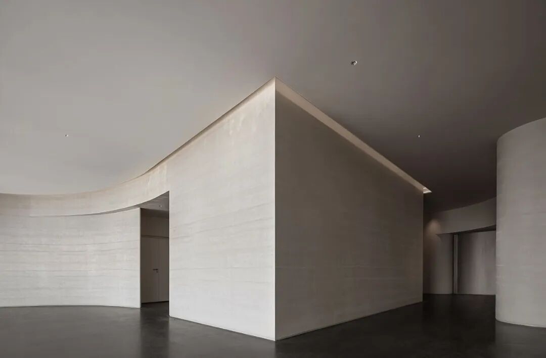 主要材料 |米白灰手工漆、灰黑色手工漆、银彩石英石、水泥石、不锈钢、钛金板、胡桃木皮、超白玻璃