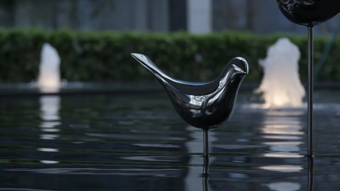 小鸟艺术雕塑以金属色泽点亮空间的灵动