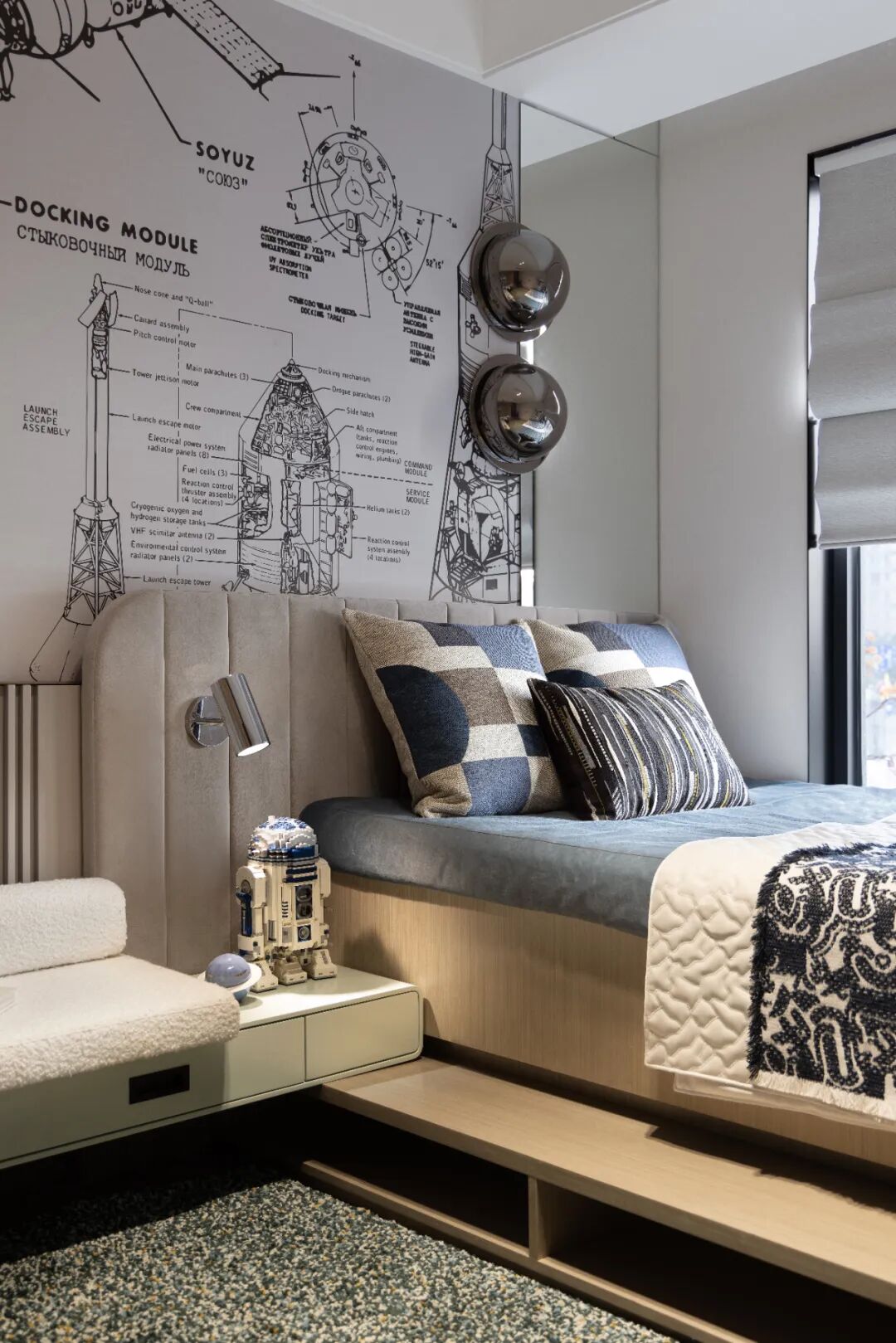 方厅的设计,没有削减其他功能区的舒适度,卧房集中一侧,动静分区,保证私密性。豪华主卧套房,集起居、衣帽、休闲于一体,连同三件套的卫生间,仿佛酒店化功能,成为真正意义上的私人领地。