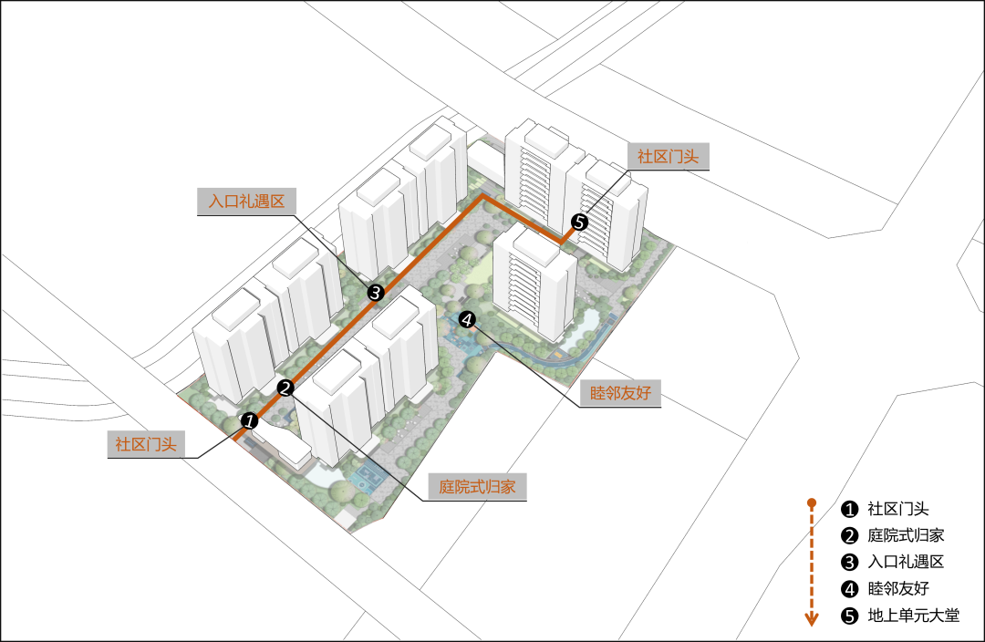 “丞相祠堂何处寻,锦官城外柏森森”,历史文化悠久。设计师从在地文脉的角度出发,参考中国传统院落式结构进行规划,但是楼栋之间距离过近会存在视线干扰,因此最终选择了一进院落——大庭院的布局形式,空间尺度开阔,南侧朝铁佛公园打开,从而使城市景观能够渗透。