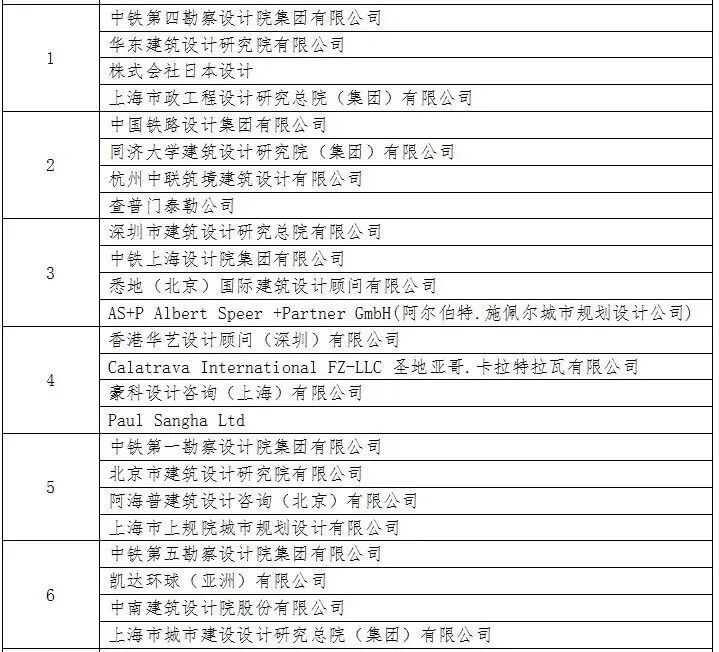 方案征集共吸引了63家国内外知名设计机构组成20家应征联合体报名,来自美国、英国、德国、日本、加拿大、西班牙等国家(地区)的一流设计团队,更不乏国内顶尖设计力量,均具有雄厚的设计实力及丰富的项目经验。2022年3月25日,经过综合考量、评选研究,确定了6家入选应征机构(链接:6家联合体24家机构入围,6月底揭晓最终方案丨上海东站综合交通枢纽方案征集)