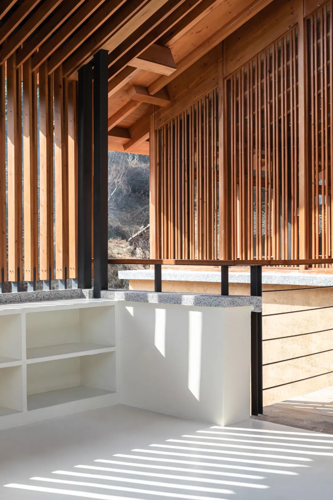乡村的未来一定是越来越多元化差异化,更加注重体验。我们倾向于开放每个空间的使用功能的可能性,灵活多变或许能实现更高的利用率。从老房子到餐厅再到半室外露台空间,不同的空间状态应生出不断变化的身体体验:人的身体从被包裹的状态转变成释放的状态,同时也契合了不同空间的使用属性。建筑时常触发着不同的身心体验,空间所表达出来的状态不光是空间本身,也影响着人的感官体验和行为经验。
