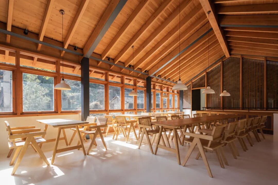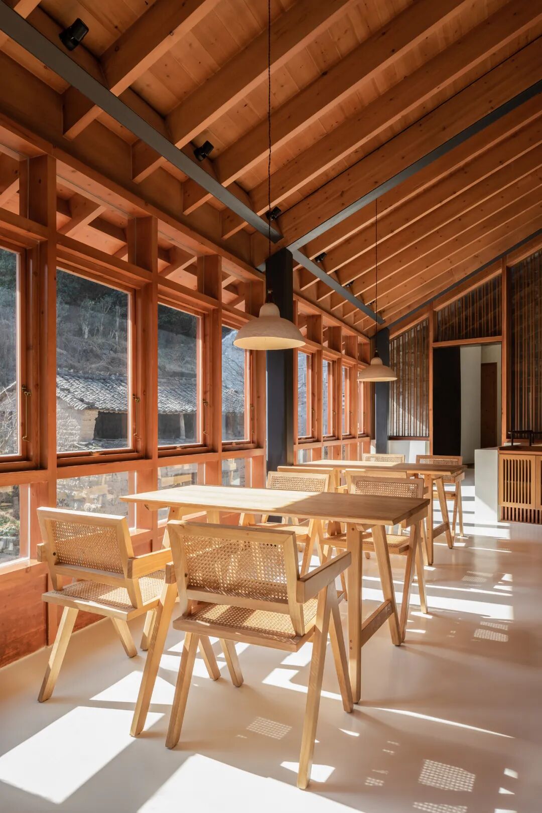 混凝土结构到钢结构再到木结构,建筑实现了由重到轻的结构转化。乡村建造让我们更加大胆的去尝试各种可能性,也让建筑的建造活动变得更加接近真实,更加契合当下乡村的发展。