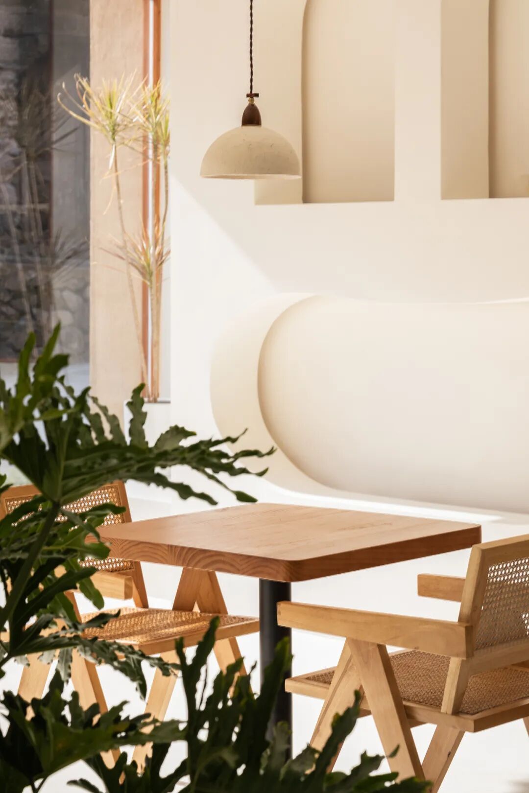 本项目的业主是福建人,身为福建人所天然拥有的对于生活情趣的向往,以及不急不慢、有条不紊的性格特质,使他们对吃的非常讲究,每餐都要煲汤,我们每次去到现场都能吃到业主研发的新菜。餐厅施工的工人也是从福建调过来的,包工头也是福建人,宁波厦门两遍跑。工人做事情比较细心,尤其是木作方面的经验丰富。建筑和室内的木作工程,木工都是在现场施工制作,施工精度跟在工厂做的差不多,最后完成的效果还是挺不错的,细节做的也很到位。油漆颜色做了很多样板,我们不希望颜色太浅太黄,又不能闷,所以是先做了一遍色之后,又盖了一遍,才达到了目前的颜色效果。最后呈现在空间里的的颜色和氛围还是比较舒服。