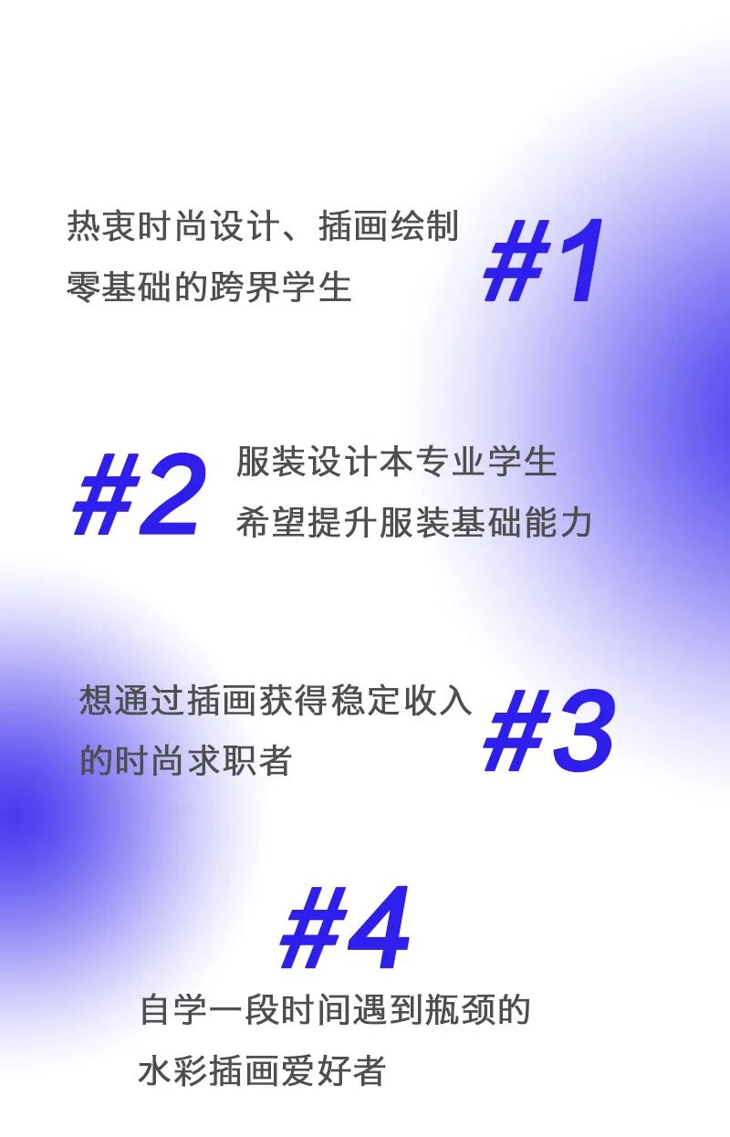 帮助水彩绘画爱好者们提升人物、色彩、面料刻画等方面的创作能力。
