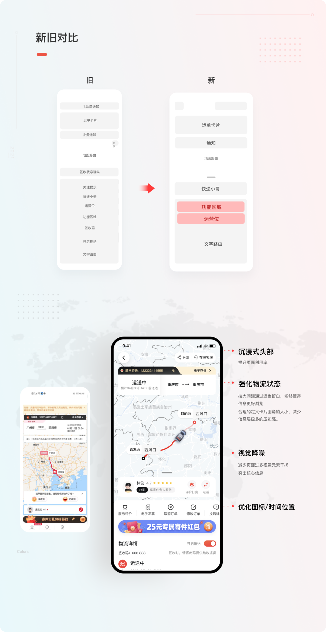 随着2021年业务发展和内容丰富,用户对产品体验有着更高的诉求。基于用户声音及产品目标,从体验设计纬度定位出现有界面风格陈旧、操作体验不统一、品牌感知弱等问题,因此我们对顺丰速运APP进行全新设计升级。
