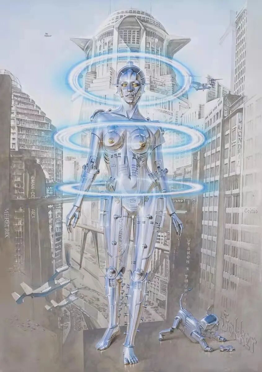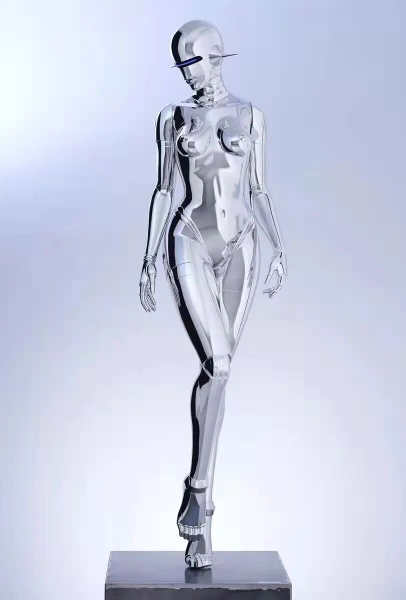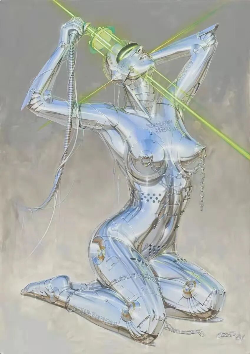 我想在空山基创作出这一系列性感的“机械姬”之前,大概没人想过创作“性感”与“机械”相融合在一起的机器人吧。毕竟机器人这种非生物本身就满满的冷冰冰气息,无法想象其与鲜活的肉体相兼容联络会是什么样子。但是在空山基的创作下光滑的金属成为了她们的皮肤,机器人同样可以拥有婀娜多姿的造型,如此大胆的创作,使得艺术和欲望得以共生!