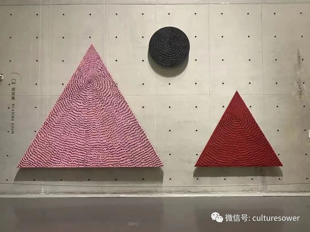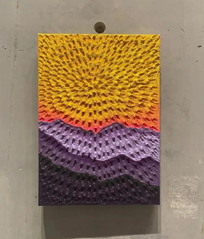 我们站在每件作品前观看画面,是风景、是几何图形...如果说“点、线、面”是构成图像的基础元素,那我们近距离参观就可以看到画面中无数的“点”,构成的“线”,成就了这一幅幅呈现在我们眼前的“面”。