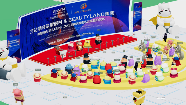 就在不久前,打破疫情期间的空间限制,万达酒店及度假村与海外资产管理集团 Beautyland Group 刚刚在元宇宙空间联合发布了一场别开生面的项目签约仪式