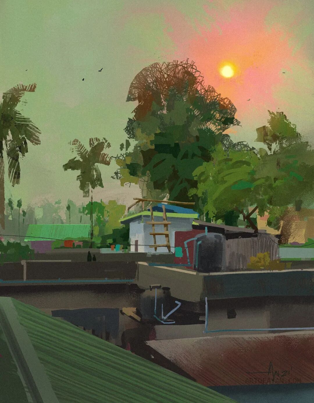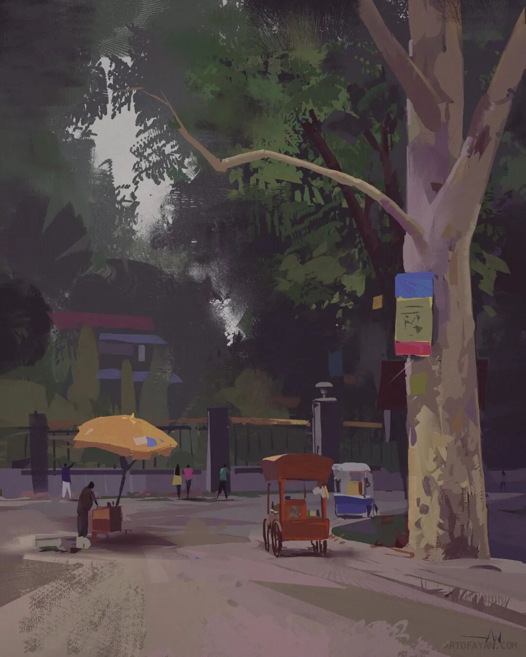印度艺术家@Artofayan,日常喜欢探索新奇的地方并将喜欢的地方画出来,就像我们身边的场景,有些迷恋和向往~