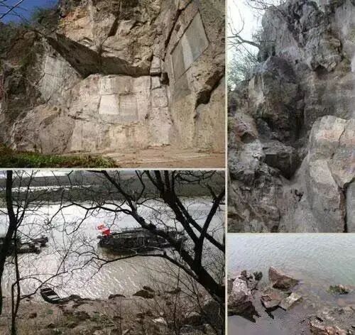 传为瘗鹤铭原石崩落遗址及江边落水处现状。