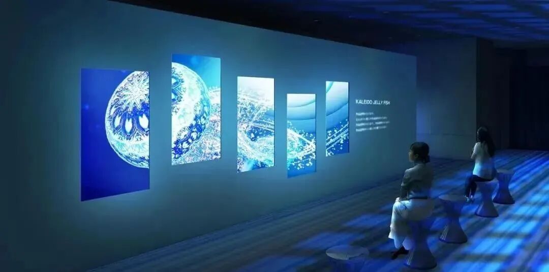 首先是团队创始人村松亮太郎的作品KALEIDO JELLYFISH,把深海藏入镜中,水母漂浮其中,让人浮躁的内心慢慢趋于平静。
