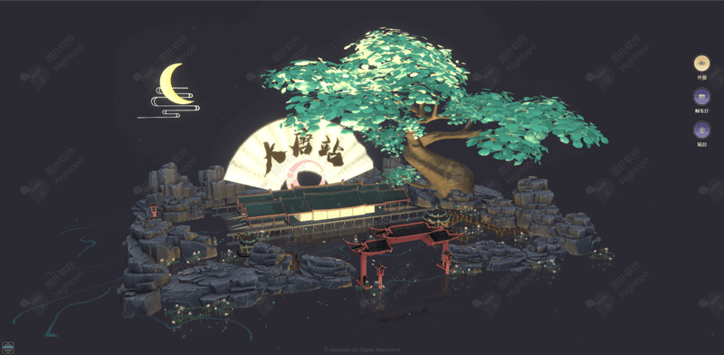 场景交互切换:通过 HT 实现可交互的 Web 三维场景,点击右侧外景、候车厅、站台等按钮即可进行操作,键盘 WASD 或 Shift+ 鼠标左键可进行平移操作,鼠标滚轮可放大缩小,按住鼠标左键拖动可旋转。方便工作人员对场景进行实时感知,查询历史数据。