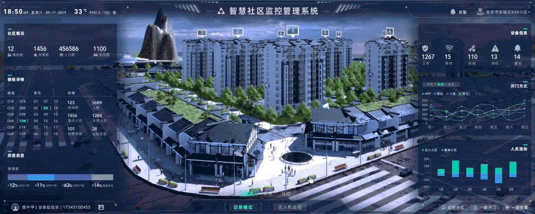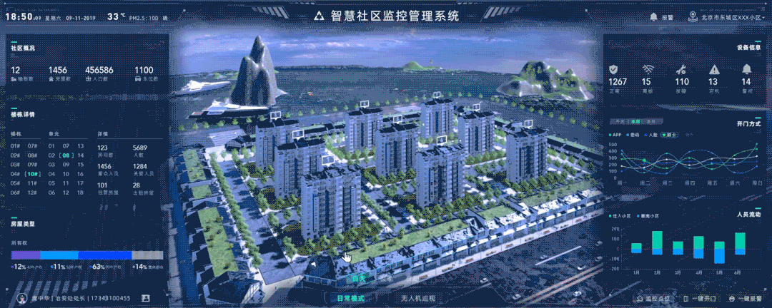 如今,高空抛物、消防车道占用通道频频发生,社区生活的安全问题与管理短板日益凸显。在物联网、大数据、5G、AI、云计算等技术发展下,依托国家“新基建”政策,对社区进行数字化、网络化、智能化建设已是大势所趋。依靠数字孪生平台,将传统社区与互联网进行融合,运动“智慧三个区域可视化大屏”,实现一张智“网”管全域,打造专业、高效的社区管理、运营、服务一体化平台,赋能社区物业管理、公共服务、社区治理智能化,助力提升社区、物业基层管理效率,为居民带去更安全、舒适的生活体验。