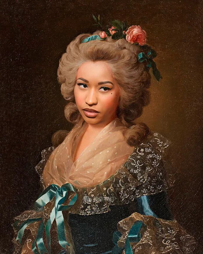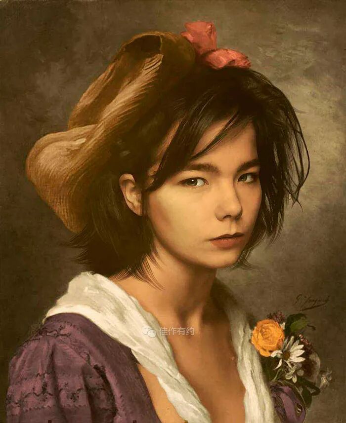 数字艺术家 Kyès 创作了穿着过去几个世纪贵族服饰的当代名人肖像,以数字方式重现古典绘画。简而言之,这种替代有效,可能是因为古典绘画风格下意识地将绘画的主题提升到了一个更高的层面,而不仅仅是平凡的再现。一个现代的类比是一颗“星星”,它也表示这种特殊性。换言之,古典名画与名人是天作之合。