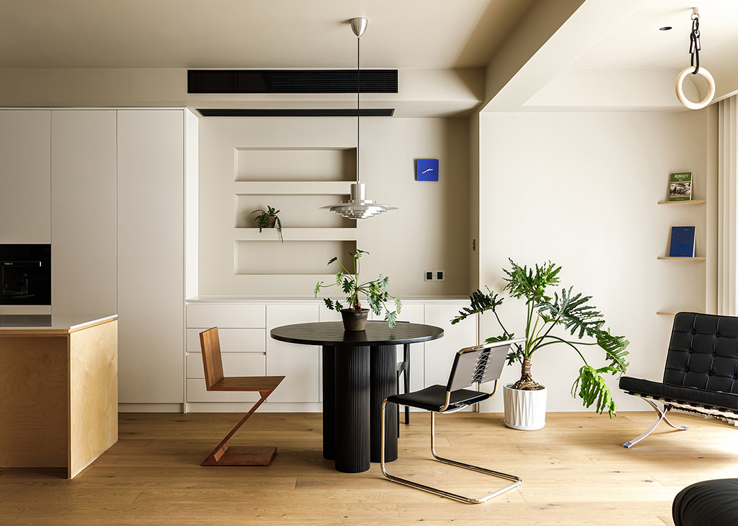 温润清透的色彩,辅以明媚的自然光,以点修面,在柔和配色与诗意停顿中,间奏出空间的质感。