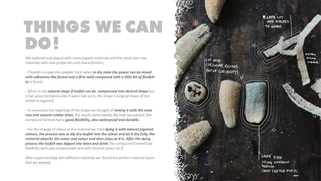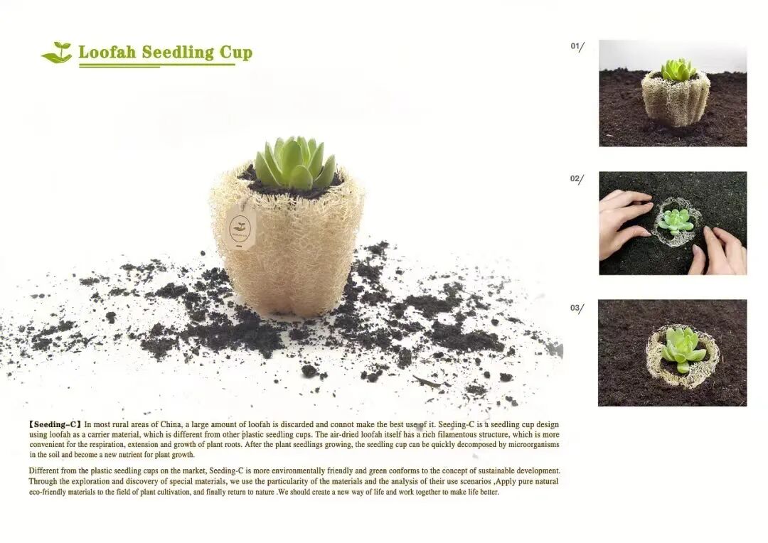 今天就一起来看看丝瓜络这种特殊材质在设计师手上会变幻出什么花样吧! 💭 01 鸡蛋包装 设计:梅竞放 鸡蛋终于找到了它最天然环保的包装,用丝瓜络拿来做鸡蛋包装也是太物尽其用了吧! 丝瓜络原本结构透气柔韧,一格一格大小刚好够用来放置鸡蛋,吃完鸡蛋后还能拿来洗碗(丝瓜络是最环保好用的清洁工具),也可以做可重复使用的防撞填充,用完扔掉了会自然被分解,不给空气、水、土壤造成负担。 💭 02 丝瓜络家居用品 设计:Fernando Laposse 利用丝瓜络通风性和半透光性制作,是不是感觉容易积层?但是丝瓜络不难清洗,这也算一个优点吧。 丝瓜络提供保温隔热的效果,用作保温瓶还可减轻原本重量,非常适合外出旅游和登山。 利用络的半透光并蜂窝状结构可以使光线散布得很温和。 丝瓜被做成花器后,出现了一种田园幽静的感觉,在城市阳台中,却有回归乡下的轻松。 丝瓜络因其是蜂窝状结构,有着均匀负重的性能,使得这款桌子在设计上承重结构无需重点考虑,因此也在造型上取得了突破。丝瓜络还具有弹性,利用其弹性制作了椅垫,不过疑问的是这个弹性可以持续多久呢? 💭 03 丝瓜络灯具 设计:明渡设计-梁晨、杨雪莹 内容来源:网络 版权归原作者所有,在此仅作交流分享