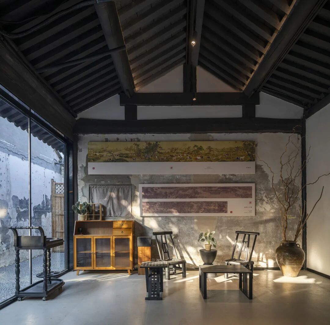 室内、建筑与自然在相互界定中融会贯通,形成一个可以相互渗透的空间结构。我们对原有院落中的墙面、门窗、屋架、铺地等构造系统进行了整理与修复。