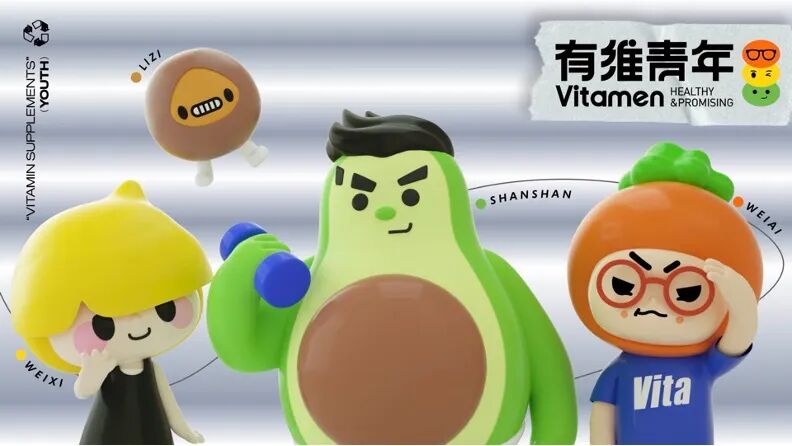 有维青年Vitamen是一个以健康的生活方式为基点,联结打通多元社交场景的内容IP。IP以超级牛油果“山山”、好奇心“粒子”、柠檬小姐“维茜”为形象代表,通过多元场景故事,建构了一个健康、奇异、探索的世界观。IP旗下包括“山在美术馆”、“VITAPARK"两个IP主打内容和体验场景,并持续推出音乐社区、趣味零食等满足IP多元社交场景的内容生态。
