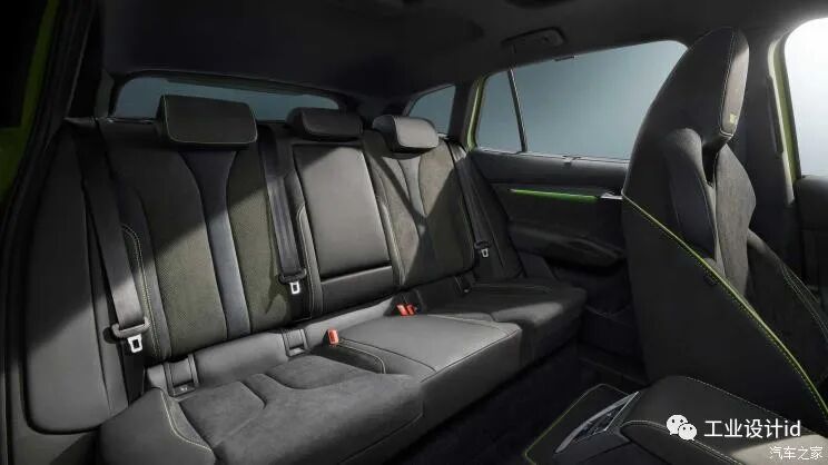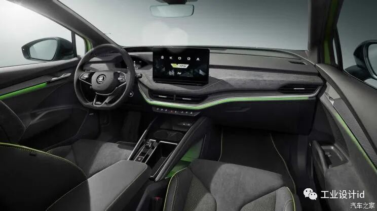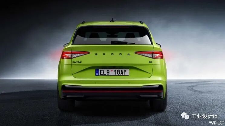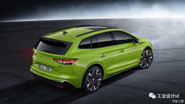 车尾部分,新车配备了一个黑色的车顶扰流板,尾灯组采用了熏黑式设计,后备厢上内凹式的牌照框区域配合层次感分明的后包围设计,让整车看上去更具有张力。另外,新车的Hyper Green绿色车漆则是vRS型号独有的,同时,ENYAQ iV vRS还可以选择一个全景天窗。车身尺寸方面,新车长宽高分别为4653/1879/1605mm,轴距为2768mm。