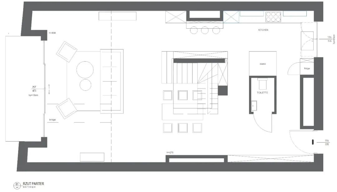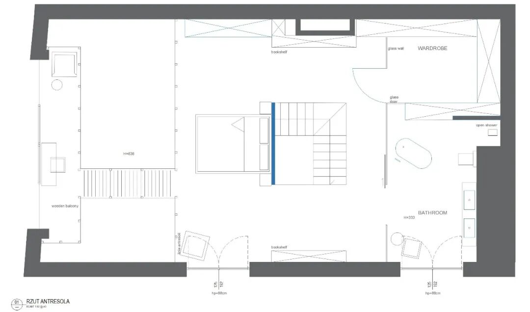 Functionally, the object resembles a single-family house: on the ground floor there is a living room, kitchen and small bathroom and on the floor an exceptional master bedroom with a large bathroom and dressing room.