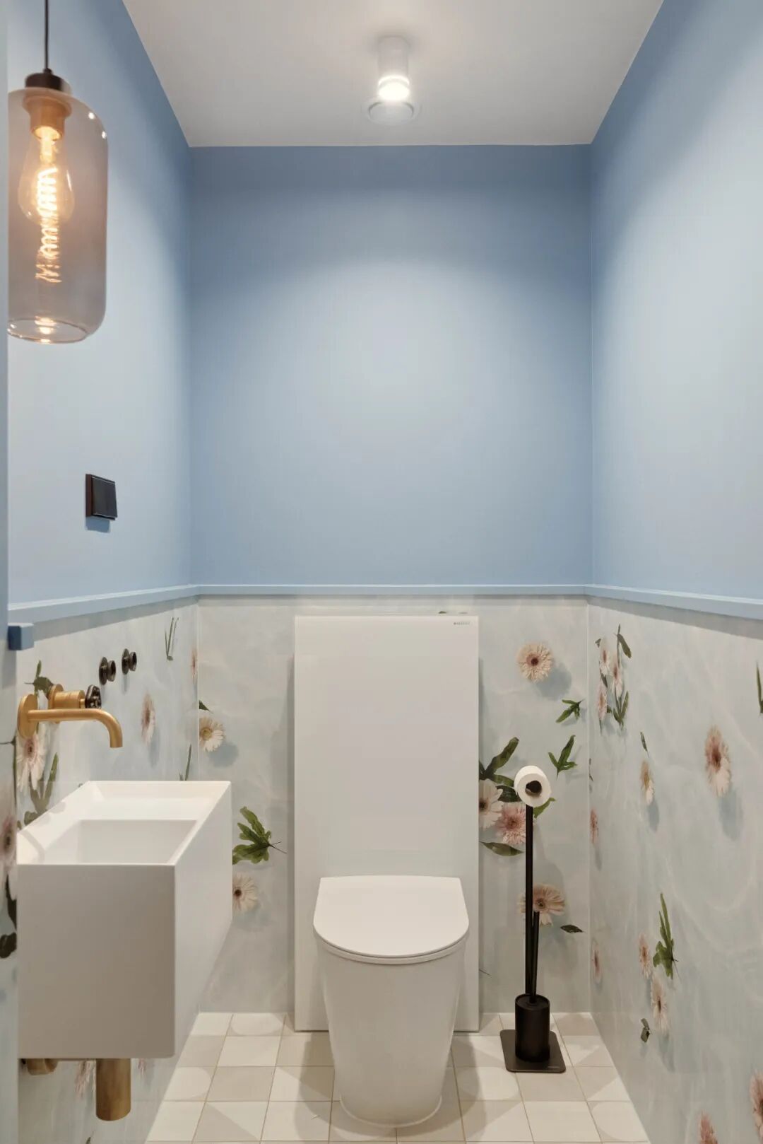 精致的传统东亚浴缸、花朵和地板上的几何图案。整体配有拉丝黄铜配件。我们邀请您在一个原始的空间进行探险,它远离显而易见和重复的内部。