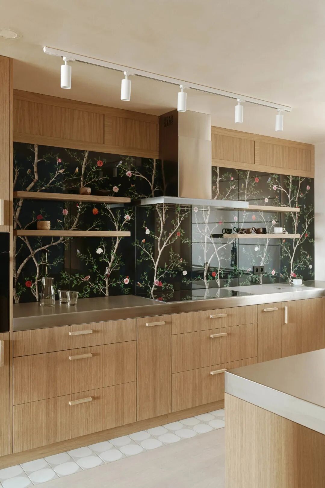 为了赋予空间最终的特性,我们参观了澳大利亚、日本、美国,当然还有波兰的仓库。最终的结果是将美丽的、我们的和当地的东西与非凡和大胆的东西相结合,例如在这个空间中创作真实绘画的大尺寸瓷砖。