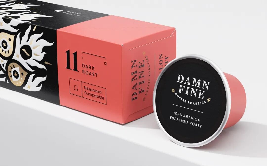 大胆的品牌名称“Damn Fine Coffee Roasters”并没有给我们机会不将一种反叛精神融入设计。标志和插图风格吸引了哥特式的氛围,甚至是一种传达大胆和大胆的骑车人美学。
