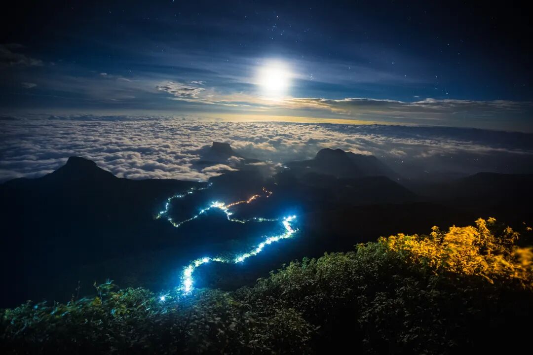 在岛的中部,高大威严的亚当峰在这里耸立。亚当峰高2243米,呈独特的圆锥形,高大挺拔,山势险峻,景色秀丽,同时也是著名的朝觐圣地。