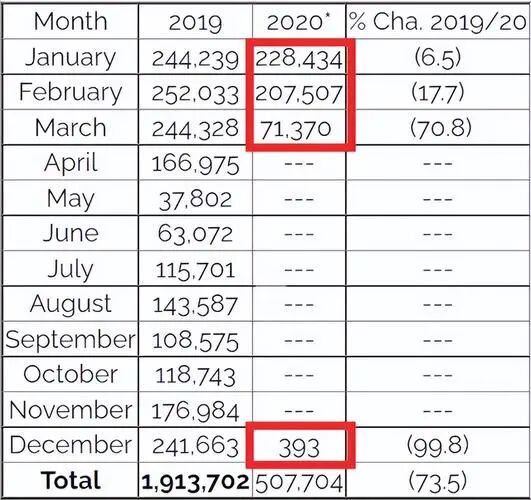 △整个2020年只有4个月有入境人次。图/中华人民共和国外交部