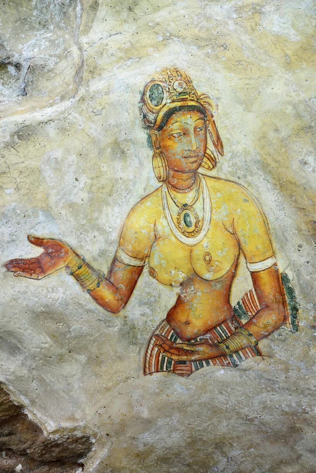 这仅剩的仕女图仍展现出了古人杰出的艺术造诣,色彩饱满,形态绝美,色调以红、黄、绿、为主色,仕女们头戴宝冠,身披缨络,下身在迷蒙云气中,上身裸露,似飞天散花等舞蹈姿势,令人称奇。这些仕女图有着“空中维纳斯”的美誉,堪称斯里兰卡古代的艺术瑰宝。