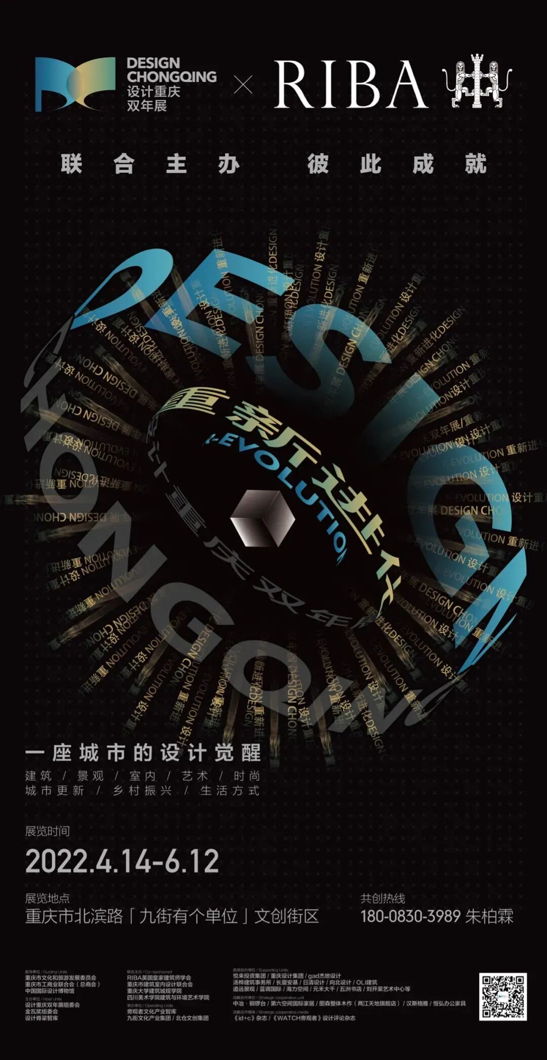 首届( 2022 )设计重庆双年展以重庆城市“山水之城、美丽之地”为母体,基于“重新进化”的策展主题,秉持开放的视野追踪重庆在全球语境下的社会变革与设计趋势,力求从全球与在地、时间与空间、人文与视觉、观念与技术、保护与发展、生态与美学、传统与先锋、多样性与共同体等新时代议题出发,通过有温度、有态度的空间装置、艺术展览、峰会论坛、文献集等形式实现跨领域、多维度、高层次的设计融合与联通,从人出发,从设计文化本体出发,重新审视设计应有的价值与养成之道,赋能设计重庆黄金时代,助力重庆申报联合国“设计之都”。