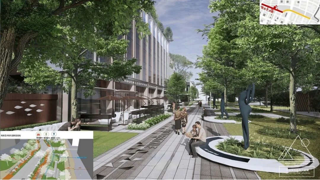 在开放共享街区建设方面,公园和城市功能的组合方式不是直接的拼合关系,而是要通过植入功能改变和城市的生硬界面,通过慢行系统和步行系统绿道串联等形式,创造更多的临绿界面,增加空间开放融合度。