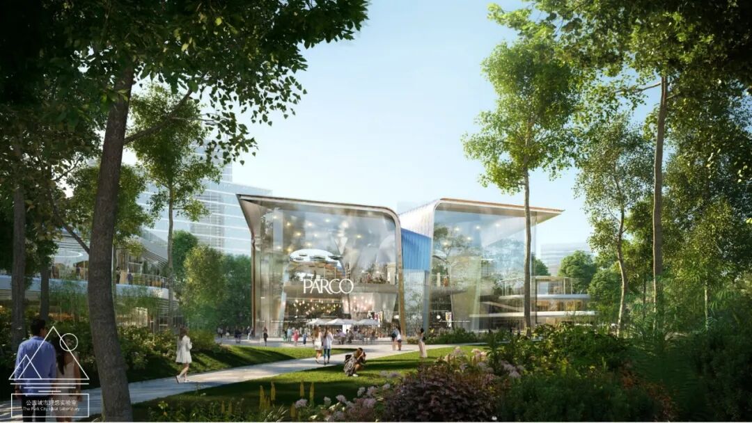 一方面,公园要向四周溶解渗透,缝合消除公园边界,真正让公园与城市深度融合。另一方面,要重塑公共空间,打造开放型街区。除了商业业态,还需从平面布局、街道空间、立体组织、地上地下构建多维绿色公共空间,并结合街道一体化设计理念,通过一体化绿道、建筑界面、步行道设计,有效组织商业、办公、居住功能,打造开放共享的理想街区。