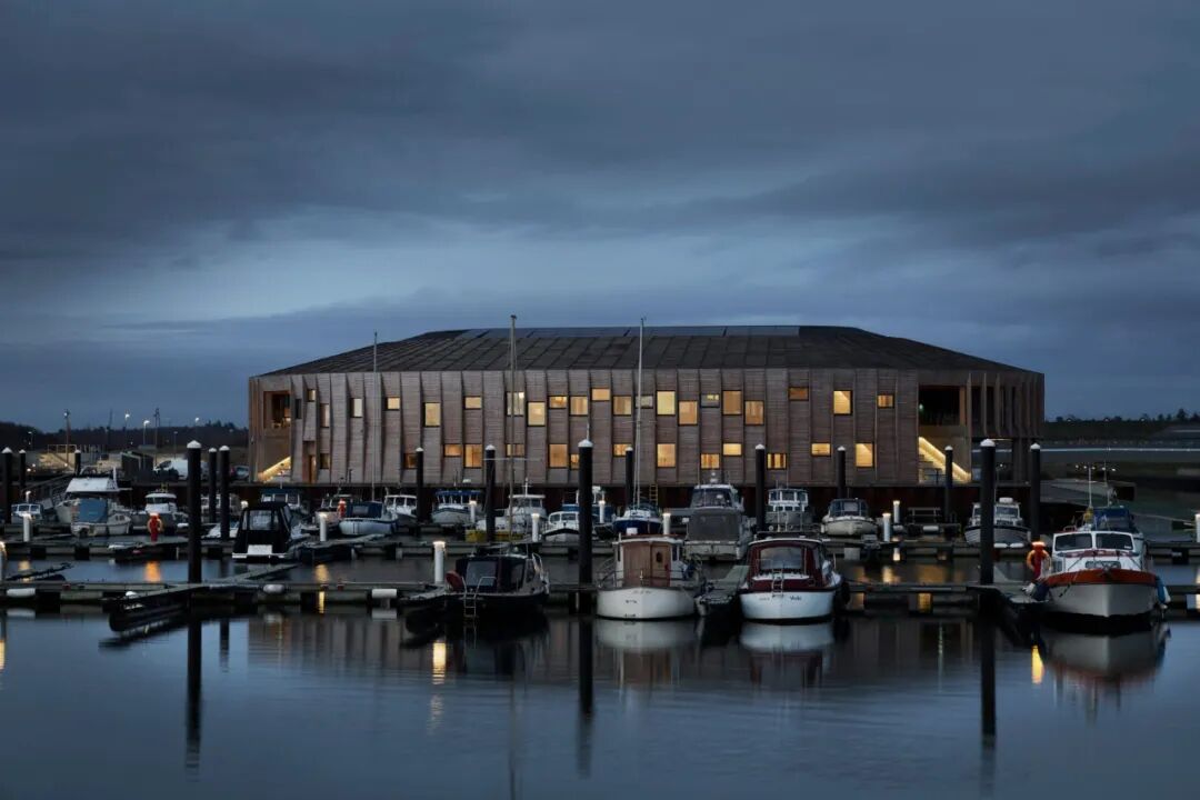 同时,经过热处理的松木被用于建筑物的屋顶结构和覆层,设计具有“节奏和重复”的特点,体现了造船的工艺和水的流动。