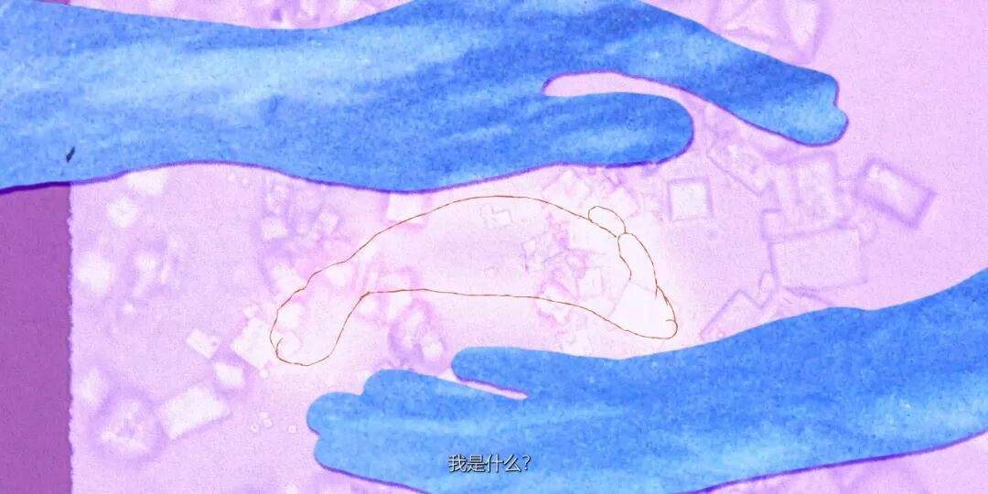 费亦宁与官承翰《早餐与人工艺术》影像静帧,8'51",双通道动画,4K、彩色、声音,2019,图片鸣谢艺术家与蜂巢当代艺术中心