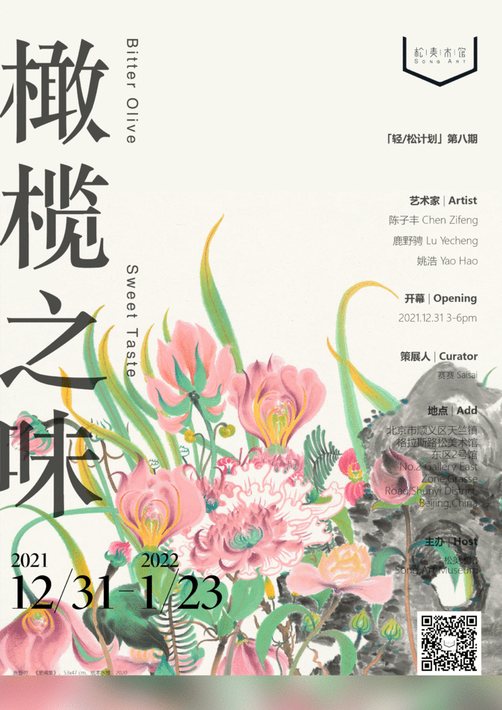 松美术馆「轻/松计划」第八期展览——橄榄之味,邀请到陈子丰、鹿野骋、姚浩三位青年水墨画家,与观众一同从“中国画”这个古老的媒介出发品味创作中的涩之回甘,旨在重新回望传统的同时,探索一种能够在此有效的方法与可能性。