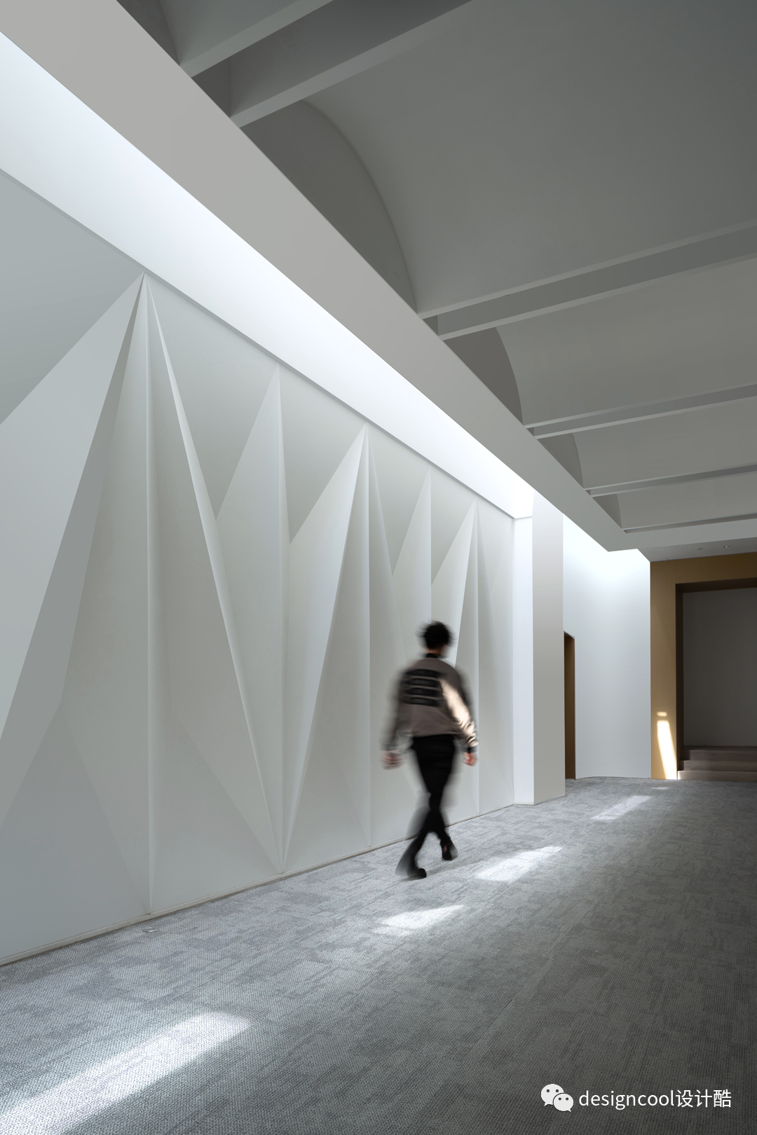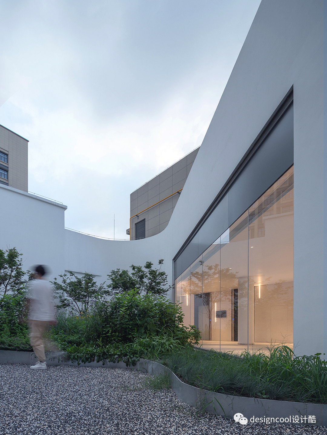 建筑的主入口两侧的水杉树列让人想起著名建筑摄影师Hélène Binet一幅关于苏州留园苔藓墙的摄影作品。生命的表达方式有时候高大葱茏,有时候却是渺小低微……
