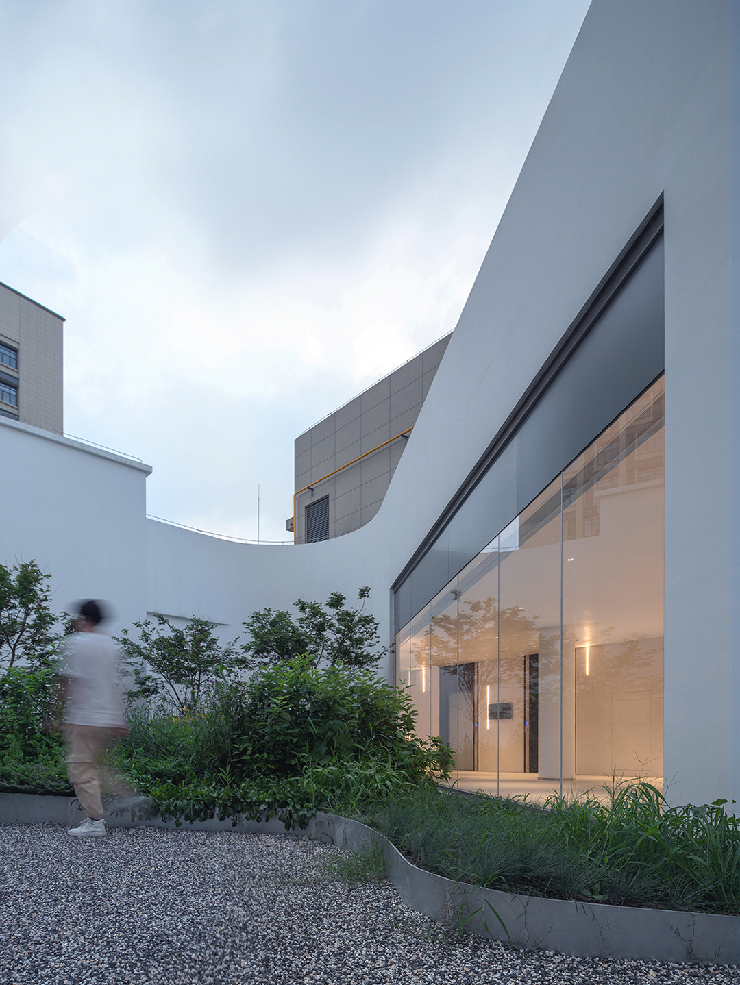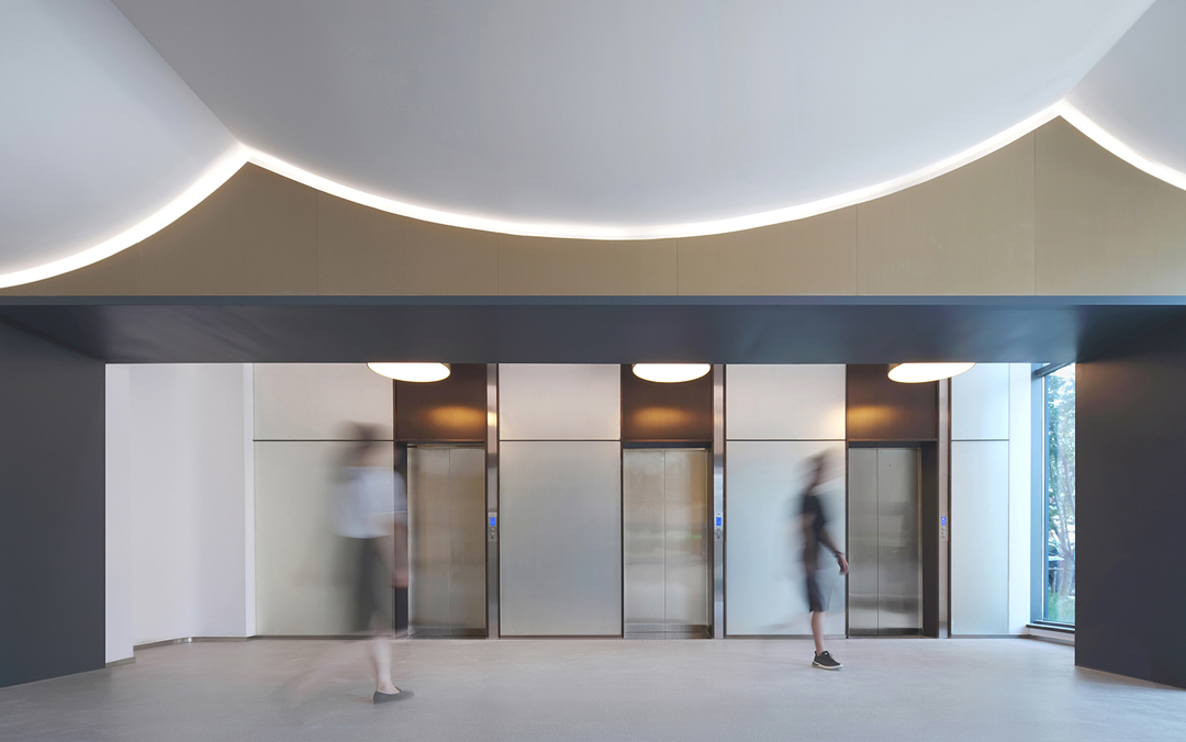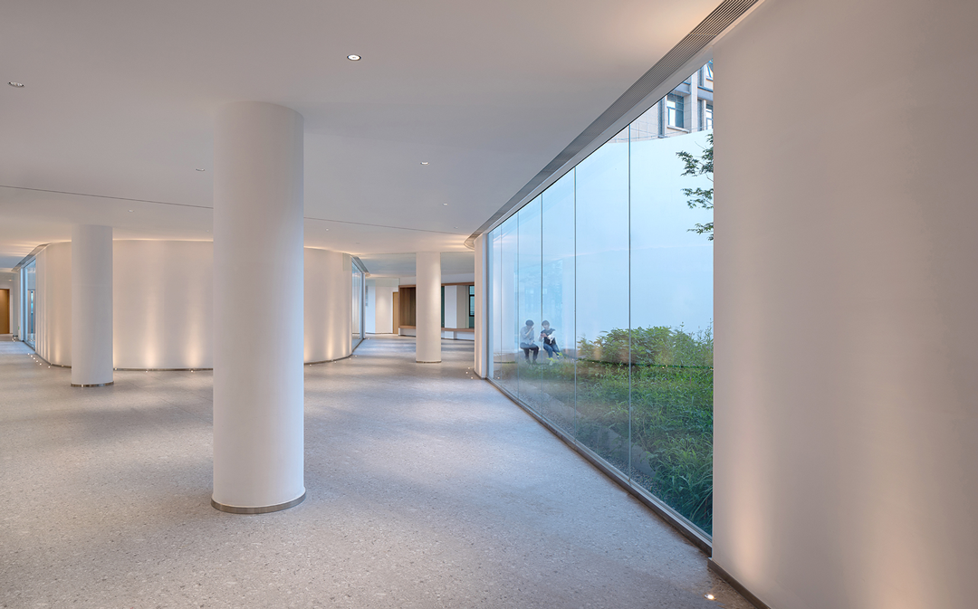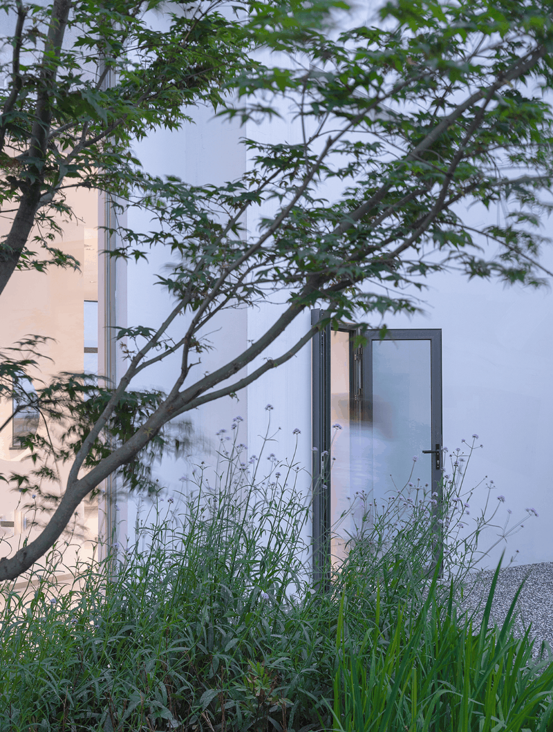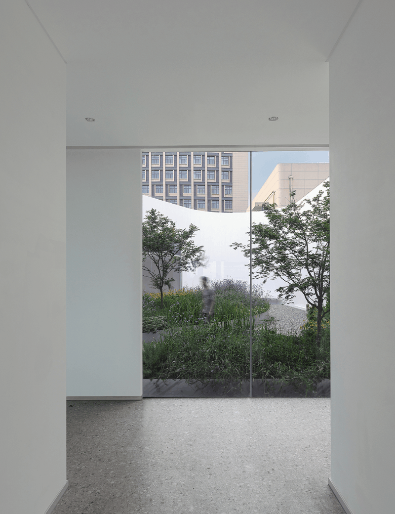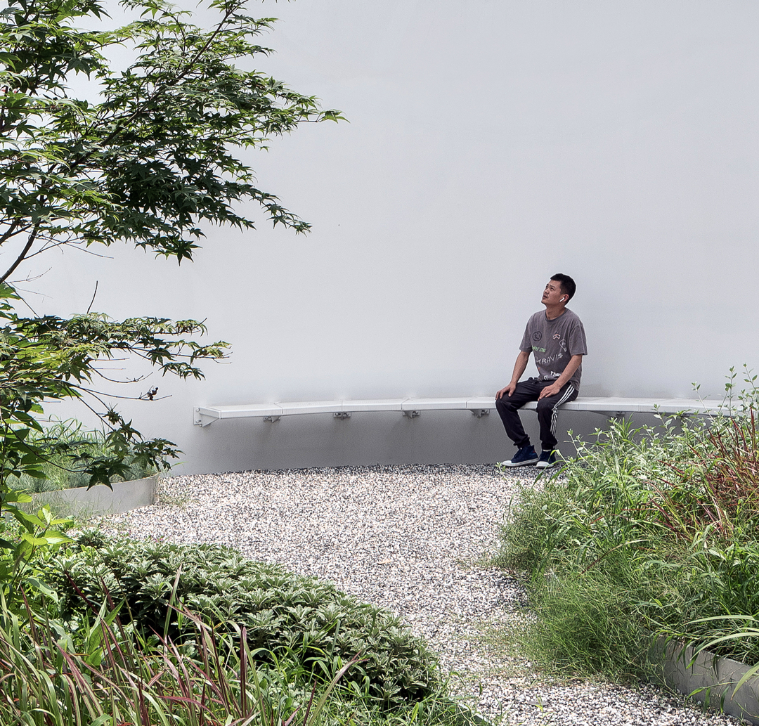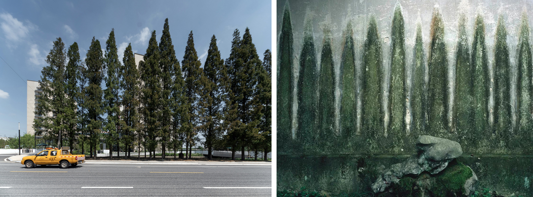 建筑的主入口两侧的水杉树列,让人想起著名建筑摄影师Hélène Binet一幅关于苏州留园苔藓墙的摄影作品。生命的表达方式有时候高大葱茏,有时候却是渺小低微……