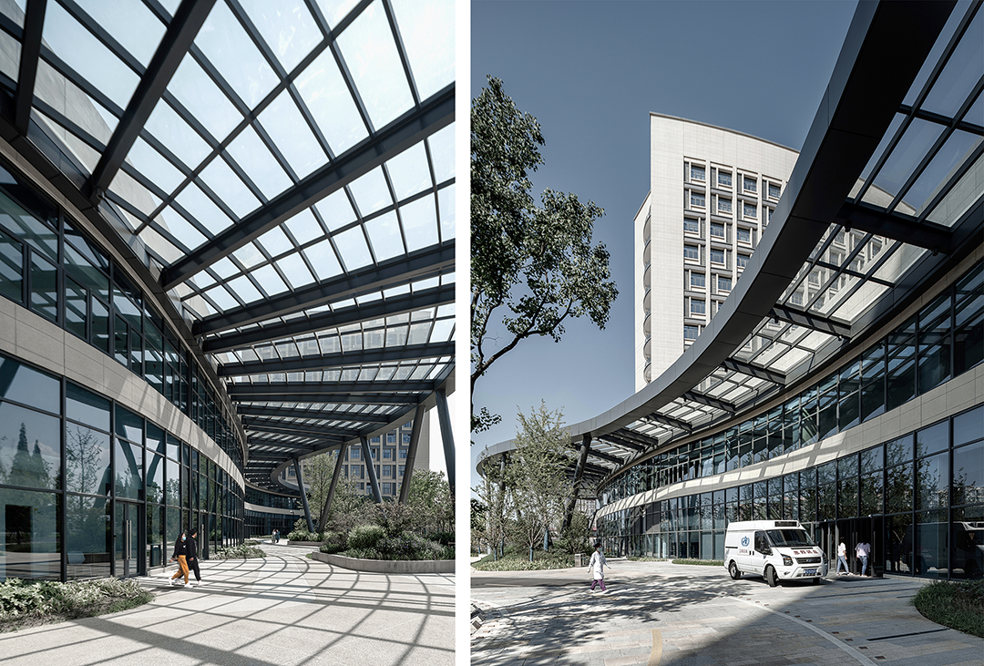 △双桥连接建筑主次入口