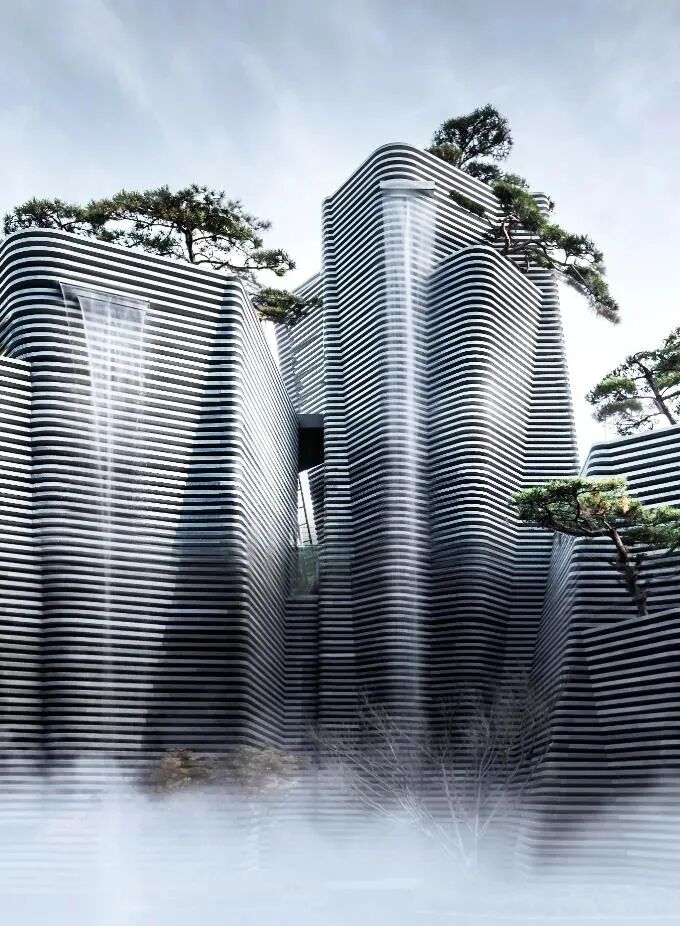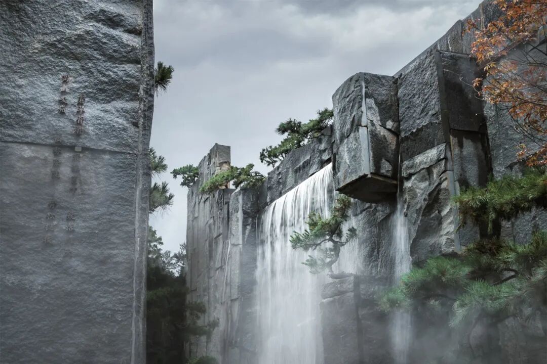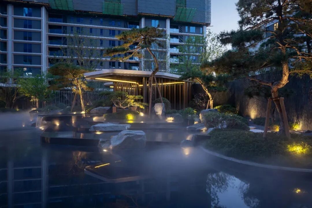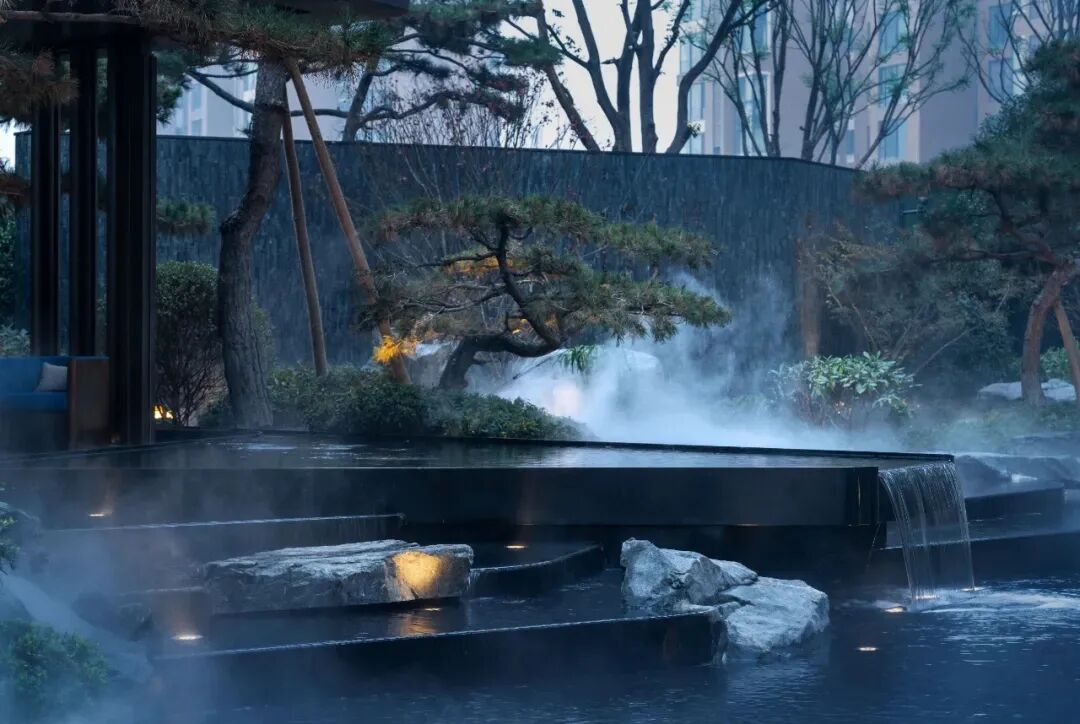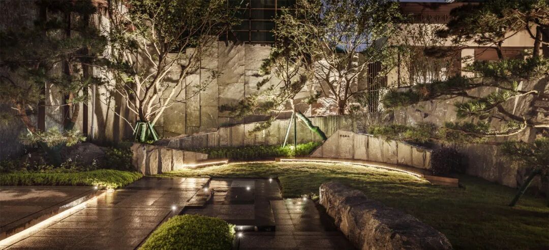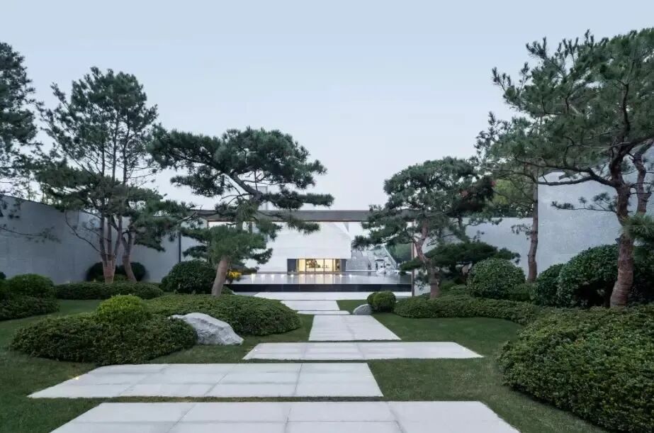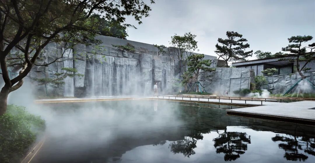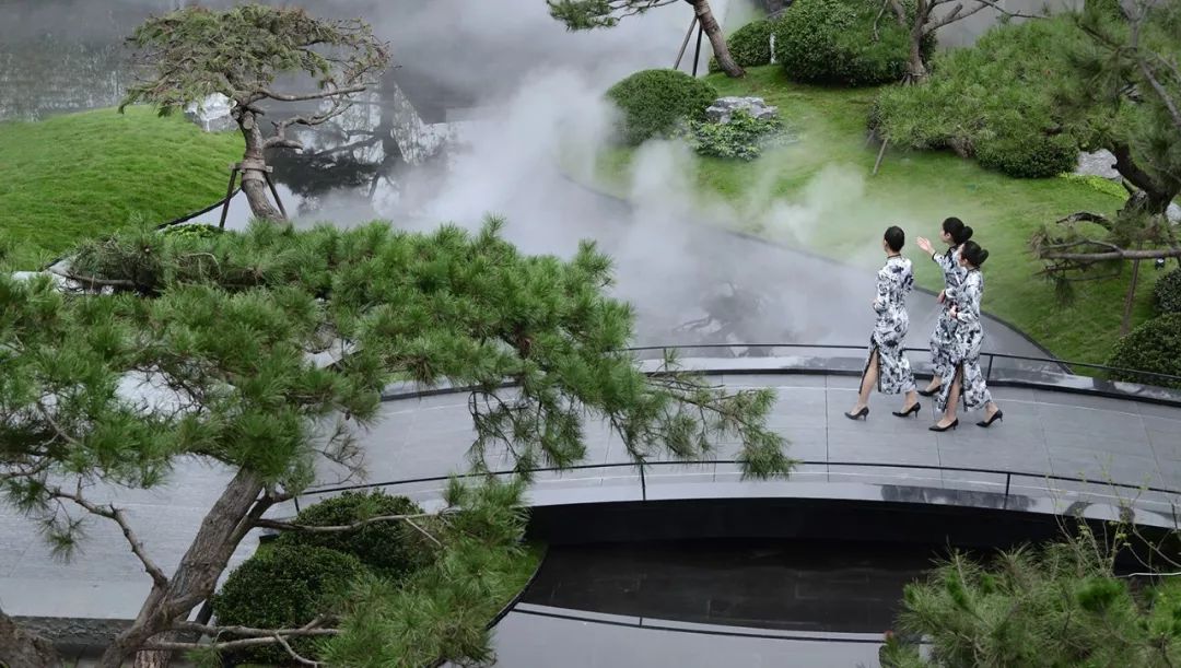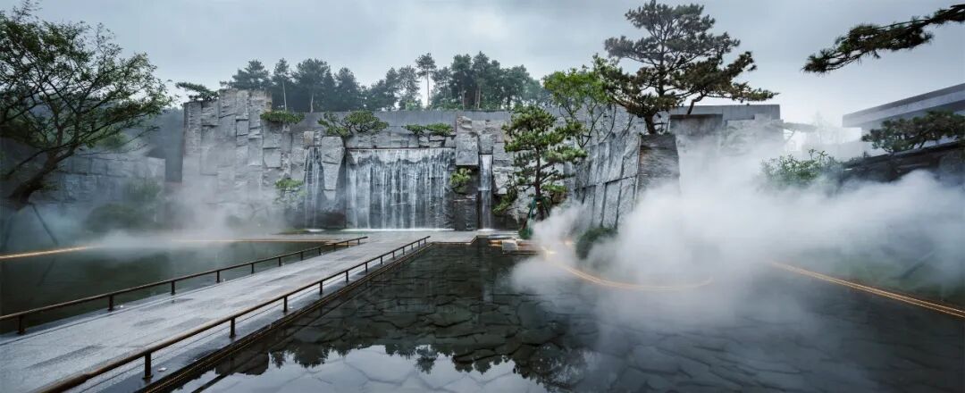 松树林的灵感来源于中国山水画之泰山之魂,也是从泰山脚下选植而来的。选松时,设计师数次跑到泰山、丈量每棵松树的尺寸及姿态,进行了数轮对比和推敲,最终找到了心中的那一片树林。