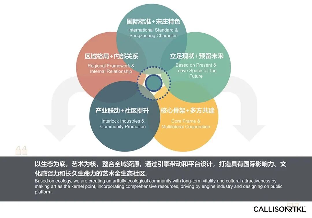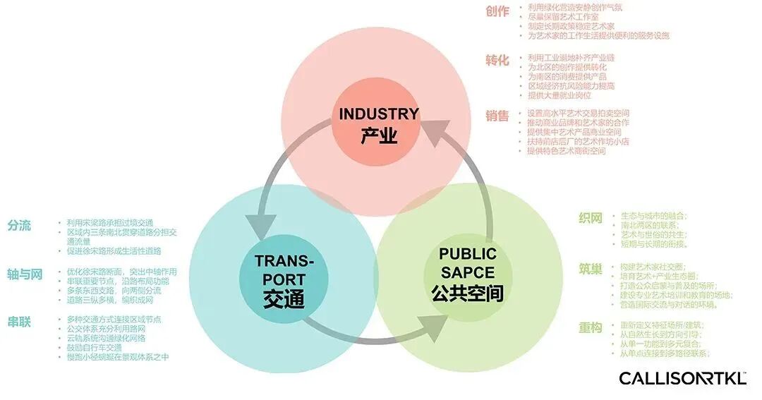 南北区之间破势而出的能量,通过产业、交通、公共空间三种缝合手段,实现空间在北区与南区之间、艺术在出世与入世之间的衔接,使小堡实现城乡一体,成为副中心和宋庄镇连接的纽带。