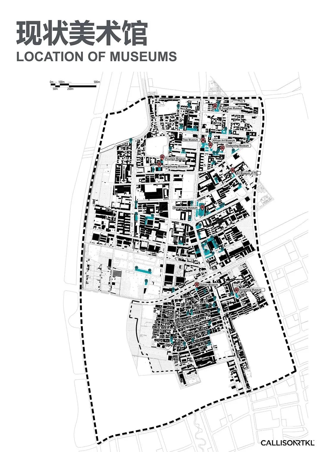 未来将尽量利用现状路网,保留艺术家建筑,仅做必要拆除和改造,以健全服务设施为建设重点,预留艺术发展用地,不进行规模化商业开发。同时,还将加宽绿色缓冲带,减少外部干扰,联通区内空地,形成绿地网络。并依托现状商业、树美术馆、大宋球堂等资源,利用工业退地新建设施,提供文化、体育、商业、停车等公共服务。核心绿地可以举办各种公共活动,构建一个服务型和具有有限开放度的艺术创作核心。