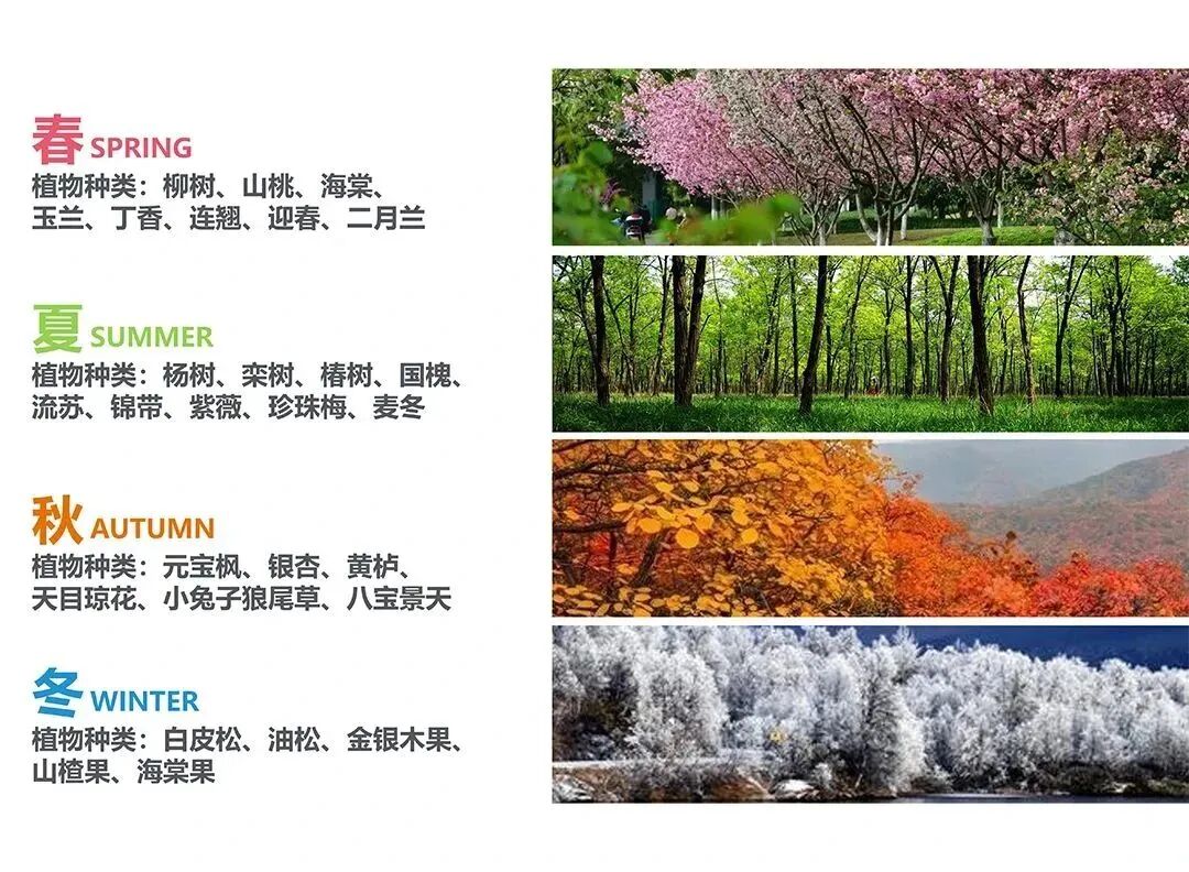 景观设计结合现有成树保留、移栽并新植符合北方气候特征的植株,搭配形成具有一定野趣的在地特征。