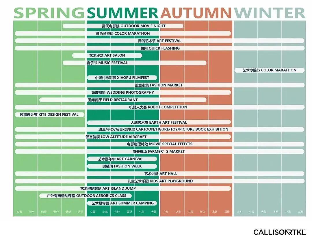 经过研究,我们梳理出小堡的四大人群:村民、艺术家、市民、游客,及其对应的十大产业,并在南中北三区空间中对应落位。