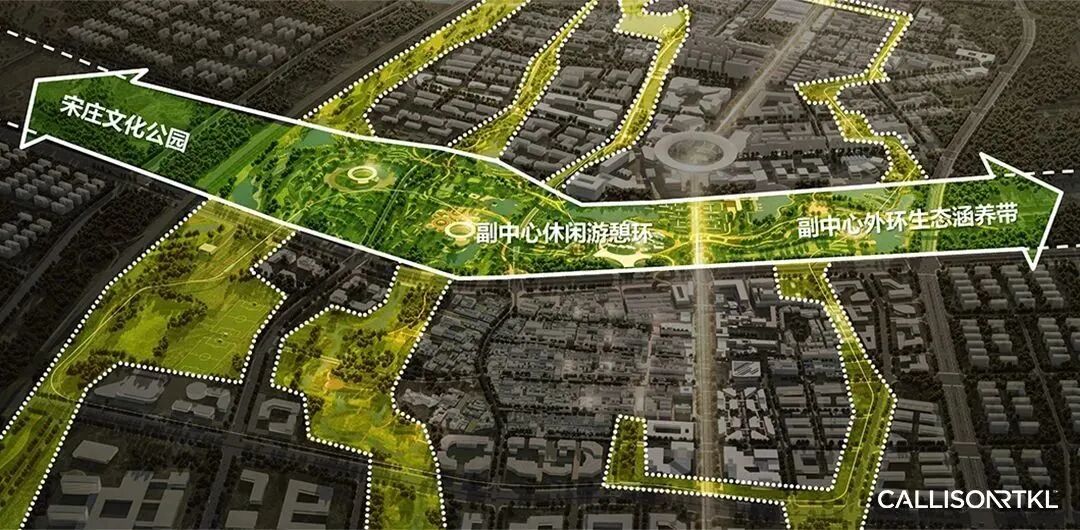 副中心绿环贯穿小堡中部,可为小堡提供大片绿化地带,同时创造多场景并强化体验。绿化和活动空间通过多个绿廊渗入南北,用艺术、绿色和活动穿针引线,将南北区的公共空间缝合成一个整体。